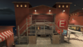 - First RED Spawn and Third BLU Spawn: A two-story spawn area with 2 exits on each floor, where one exit leads to the Loading Dock and the Dropdwon Shortcut, and the two other ones to the Kitchen. The progress of the cart determines what doors are locked and which team spawns in here. If checkpoint B has not been captured yet, this spawn is RED-owned and all doors are usable. If checkpoint B is captured, then the door leading to the Dropdown Shortcut is closed for RED. If checkpoint C has been captured, BLU owns the spawn, but can also only use the doors leading to the Dropdown Shortcut. If checkpoint D has been captured, BLU gains access to the door leading to Kitchen.